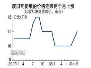 日本廢舊瓦楞紙價格在最近1年里劇烈波動。由于電商市場擴大的影響,用于快遞的瓦楞紙需求增加。作為原料的廢紙自2013年前后至2017年夏季持續(xù)漲價。之后價格下跌的契機是2017年夏季中國強化環(huán)保對策。不符合排煙等環(huán)保規(guī)定的造紙企業(yè)停工,相關部門還實施了進口限制。日本國內(nèi)由于出口減少,出現(xiàn)供過于求。